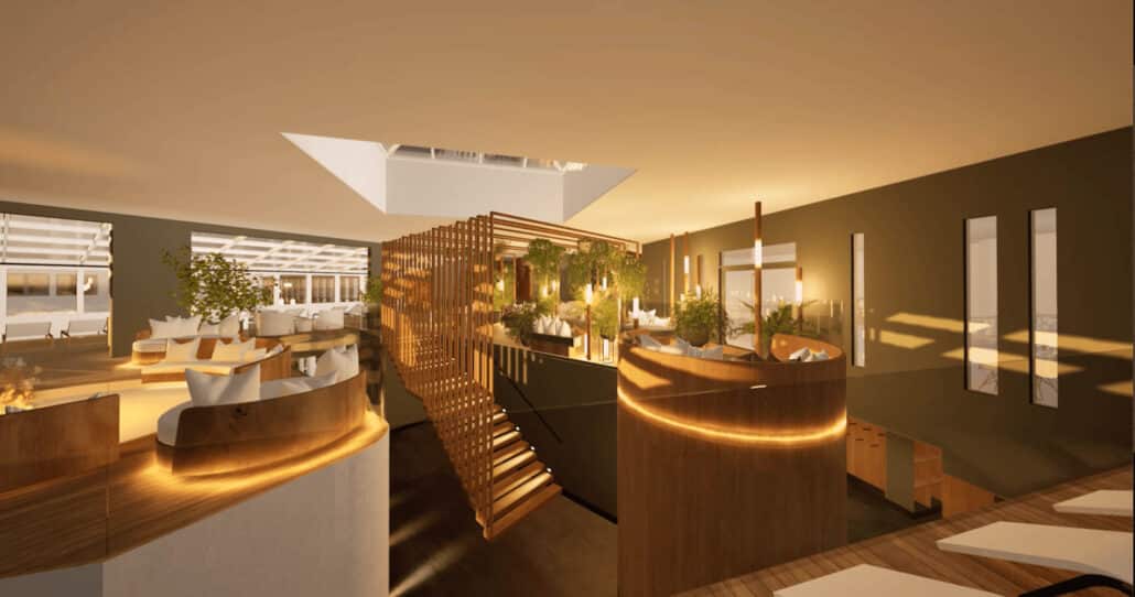 Geplant sind unter anderem ein Waldraum, ein Silent Garden sowie ein neuer Außenpool mit Massageliegen. Bestehende Saunen im betroffenen Bereich werden modernisiert, die bisherigen Solarien durch eine neue Sauna ersetzt und die Finnische Sauna 3 zur Event-Sauna umgebaut. Auch zahlreiche Anregungen von Gästen wurden in die Planung integriert – etwa Trinkwasserbrunnen, eine Aufguss-Bar und eine neue Raumaufteilung: Das Sauna-Restaurant wird künftig mit einer Glaswand von den danebenliegenden Ruhebereichen getrennt, sodass weder Essensgerüche noch Gespräche die Erholung stören.